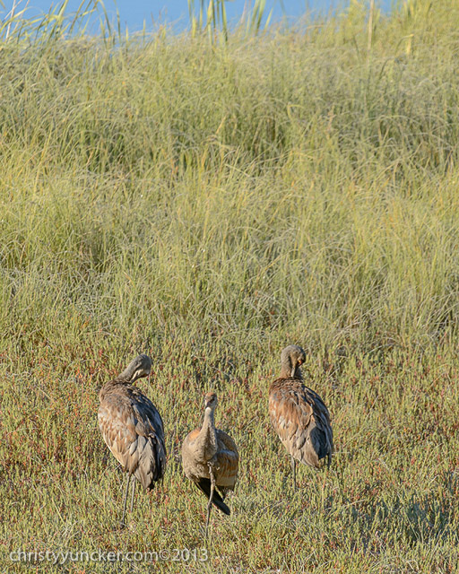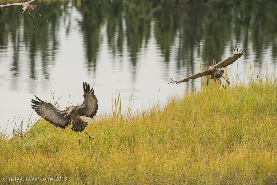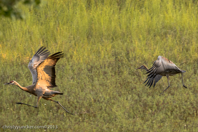 As the marsh vegetation turned yellow in late summer, the crane family flew in and out of the nest territory several times each day. These frequent excursions probably help improve Pi's flying fitness as well as his navigational skills.