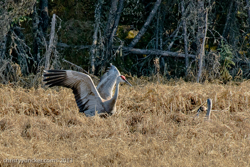 Both cranes feather paint during this time and wander their territory while the snow and ice melt.