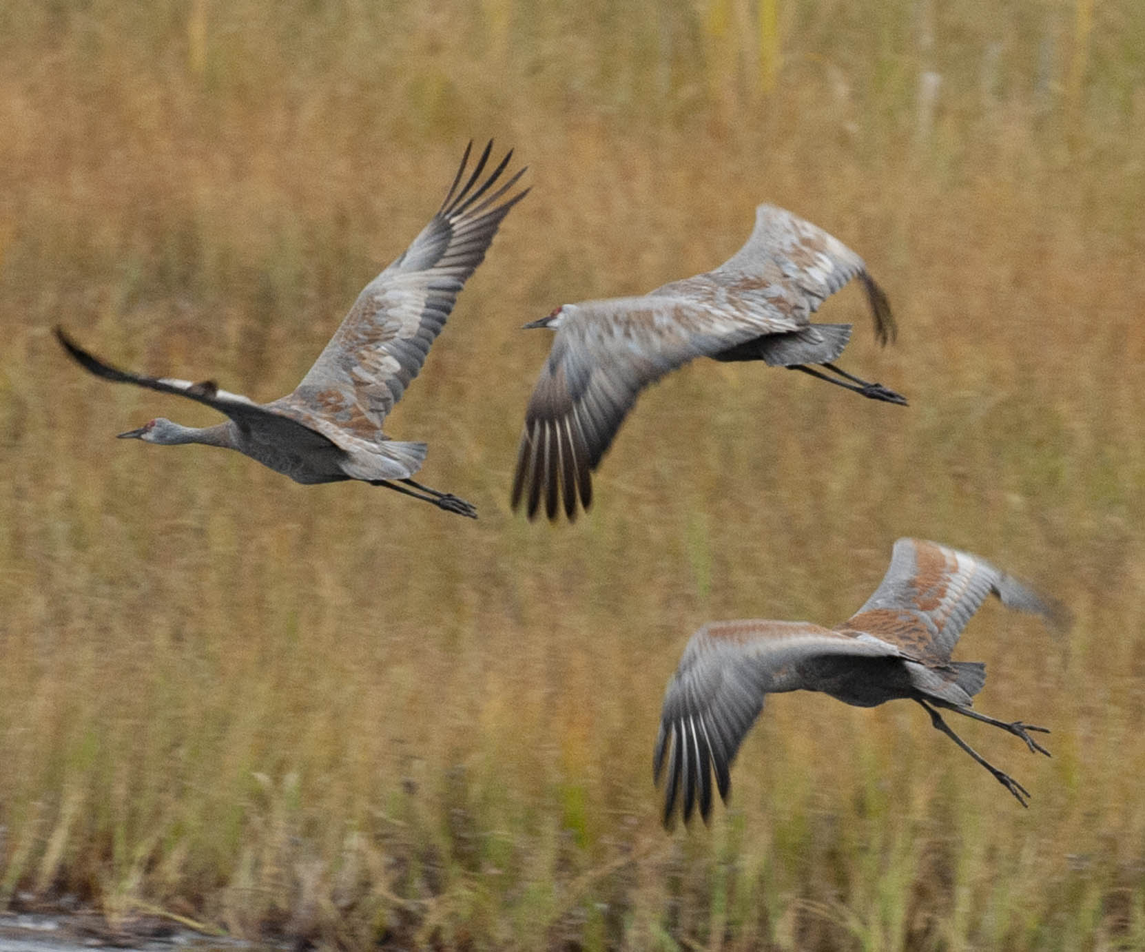 Millie (left), Roy (center) and Jacques wing-spread.