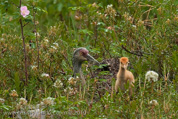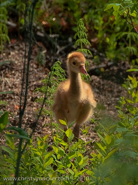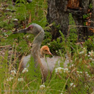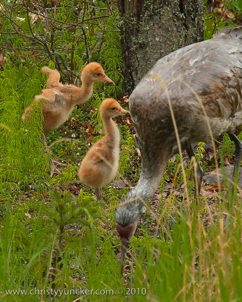 In 2010, Roy and Millie returned from migration on April 22. They began incubation on May 4 and the colts hatched on June 4 (Lucky) and June 5 (Chance). The two colts did well in their first week. By the end of the second week, Lucky (first-hatched, we think) was distinctly larger than Chance. See also Alaska Sandhill Crane Blog.