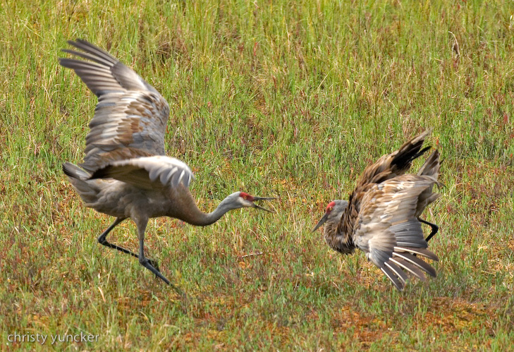 For a discussion of dancing, click on the link above: "Why do cranes dance?"and also see Alaska Sandhill Crane Blog for June 18, 2009.