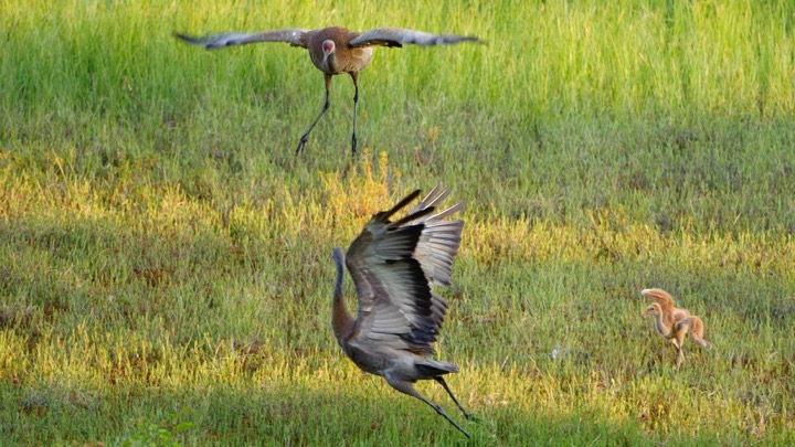 Our search of the scientific literature has yielded no direct observations of Sandhill colt siblicide in nature. There are well-documented reports of colts killing one another in wildlife farms, where crane eggs are hatched in an incubator and the colts raised packed together(like baby chickens) in dense flocks. But such hatchery flocks of crane colts are unnatural. In the wild, crane colts are singlets or in pairs.